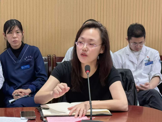 随后,省级一流本科课程《神经系统疾病》《眼科学》教学团队教师刘欣、席进伟、校级一流本科课程《危重病医学》《肿瘤学》教学团队教师范晓英、陈鑫分别结合省、校级《一流本科专业建设标准》及课程建设方案就课程建设的进展情况进行了详细汇报。