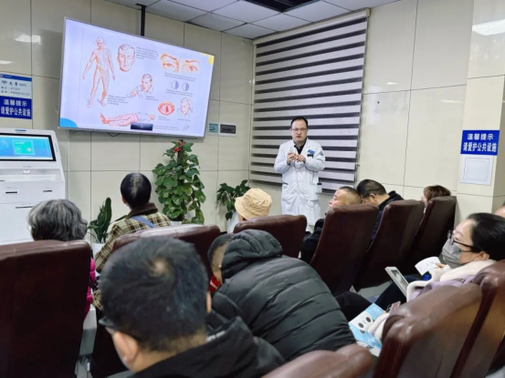 为进一步普及“世界卒中日”核心知识,我院在内科专家门诊候诊区开设健康讲座,由神经内二科副主任医师高章代主讲《脑卒中的识别与预防》。讲座中,高章代副主任医师结合临床案例,清晰讲解脑卒中的早期识别方法、高危因素及预防措施,倡导群众牢记“早发现、早干预”原则。同时针对老年群体特点,重点强调“控制基础疾病(如高血压、糖尿病)、调整健康生活方式(如合理饮食、规律作息)、高危人群定期管理”三大核心要点,帮助候诊区患者及家属在就诊间隙,高效掌握脑血管健康防护知识,在秋日寒意中筑牢健康防线。
