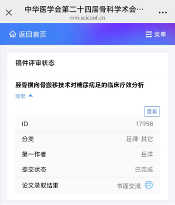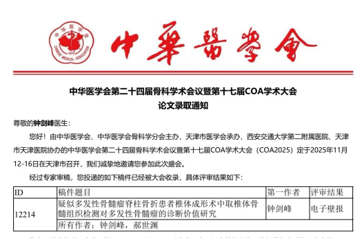 会前,我院骨科专业团队高度重视,积极组织,精心筹备参会事宜。经过大会学术委员会的严格评审,报送的多项学术成果凭借其创新性和临床价值脱颖而出,成功获得大会发言资格,并有多项研究入选电子壁报、书面交流等,在大会这一高水平的学术平台上,全面彰显了我院骨科专业团队的扎实功底与整体实力。