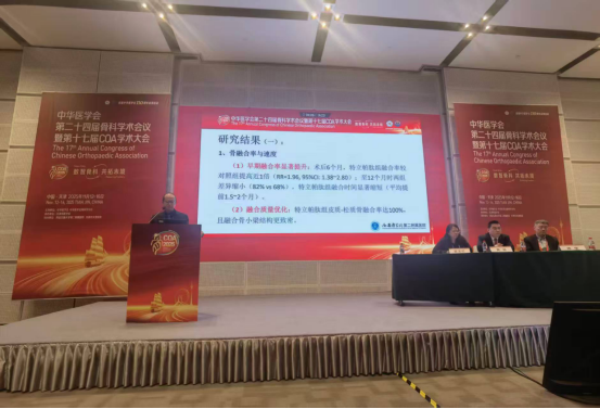 骨质疏松会场:郝世渊团队作《特立帕肽在骨质疏松患者椎间融合术中的应用》论文发言