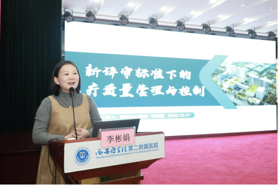 为深入贯彻国家关于医疗卫生事业高质量发展的精神,精准把握新时期医疗质量管理与评审评价工作的核心要求,12月17日下午,我院特邀西安大兴医院质控科兼评审办主任李彬娟,开展《新评审标准下的医疗质量管理与控制》专题培训暨座谈交流会。医院全体临床、医技科室主任、业务骨干、质控员,以及医务部、质量控制科、数据中心等医疗管理部门人员齐聚教研楼学术报告厅,共同参加培训。培训由质量控制科主任宋涛主持。