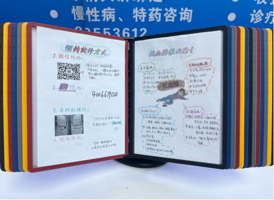 门诊部团队把专业的健康知识,变成了大家一看就懂的“小贴士”。他们亲手绘制了可爱的健康指南绘本,制作了方便携带的“彩虹便民贴”,用图文并茂的方式,向大家普及门诊就诊流程、介绍怎么更方便地挂号、线上线下预约方式、老年人居家防跌倒实用措施、来医院做检查要注意事项、冬季如何预防感冒,以及高血压、糖尿病等慢性病患者日常血压血糖监测与管理方法,希望这些知识能真正融入到大家的日常生活里。
