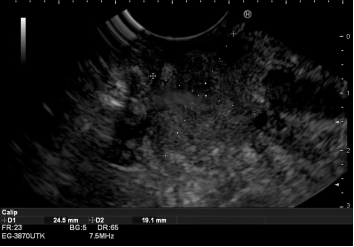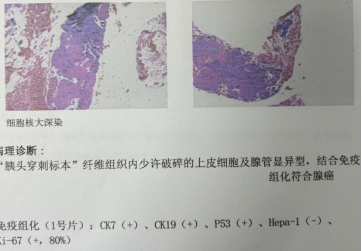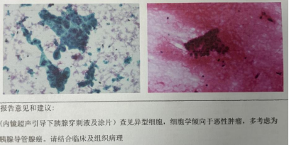 在充分的术前准备和家属沟通后,手术如期进行。精准诊断阶段:消化内科温蕾医生首先进行EUS检查。内镜前端的高频超声探头紧贴消化道壁,对胰头部病灶进行了360度无死角扫描,清晰地显示了肿瘤的大小、边界及其与周围血管的毗邻关系。在实时超声的精确引导下,穿刺针犹如“GPS导航”般,毫厘不差地穿越十二指肠壁,直达肿瘤核心,成功获取了足量的条索状组织,为病理诊断奠定了坚实基础。紧急治疗阶段:随后,无缝切换至ERCP操作。蒋承志医生熟练地把十二指肠镜抵达十二指肠乳头,造影清晰显示肝外胆管重度狭窄。导丝顺利通过狭窄段,一枚覆膜金属支架被精准释放于梗阻部位。瞬间,淤积的胆汁得以顺畅流入肠道,梗阻成功解除。整个手术过程流畅,患者无特殊不适。术后病理结合免疫组化,迅速明确诊断为胰腺导管腺癌。随着支架起效,患者黄疸快速消退,肝功能指标显著改善,为后续可能进行的抗肿瘤治疗赢得了宝贵时间和身体条件。