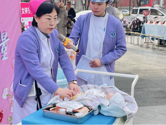 随后,多学科健康科普讲座与互动体验依次展开,内容丰富实用。面对刚刚降临的小天使,许多宝爸宝妈既欣喜又略显手足无措。新生儿科主管护师邵晓梅现场演示了新生儿脐部护理和更换尿布湿的正确方法,并进行一对一指导,帮助新手爸妈快速掌握育儿技能。