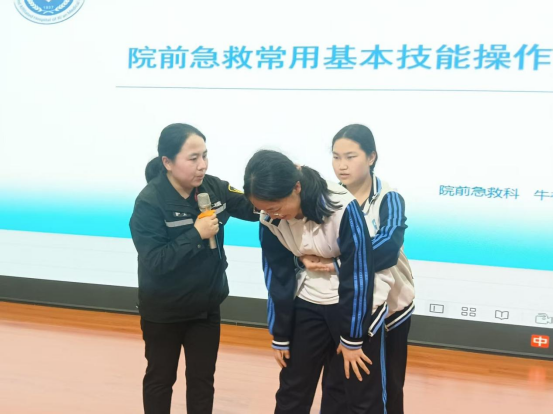 院前急救科主管护师徐静利用模拟人进行实操教学,指导师生规范完成心肺复苏与儿童异物梗阻急救操作,不仅仅是纸上谈兵,更让大家在动手实践中掌握关键技能,切实提升自救互救能力。
