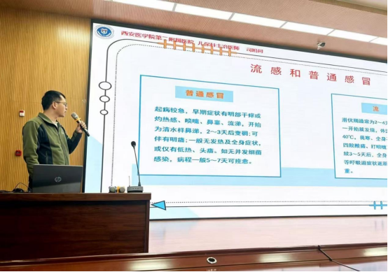 儿童保健科主治医师司旭柯针对春季传染病,讲解流感、水痘、手足口病、诺如病毒等传染性疾病知识,给出科学实用的校园防控建议:坚持体育锻炼、增强自身体质,按时完成疫苗接种,养成勤洗手、常通风、规范佩戴口罩、减少聚集的良好习惯,做到早发现、早报告、早隔离,全方位筑牢校园传染病防控屏障。