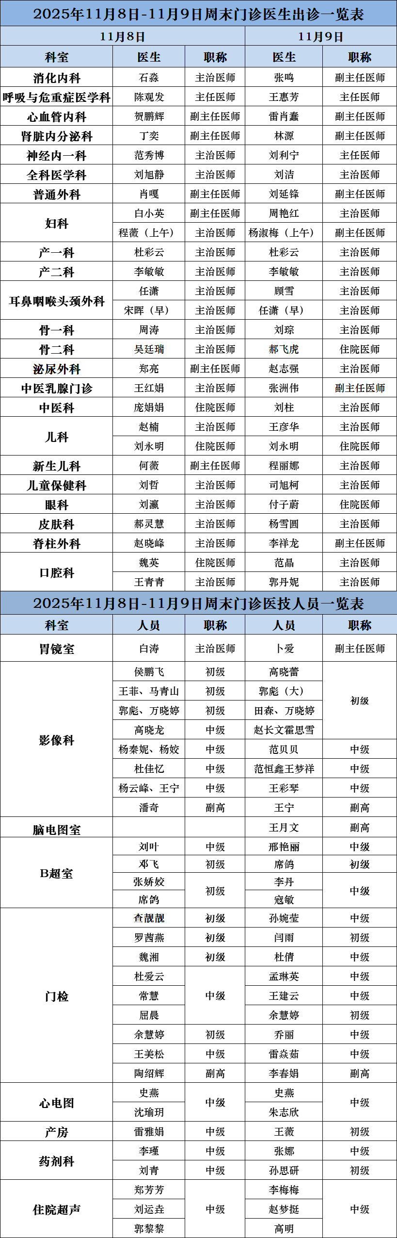 周末门诊丨西安医学院第二附属医院11月8日-9日周末门诊出诊安排