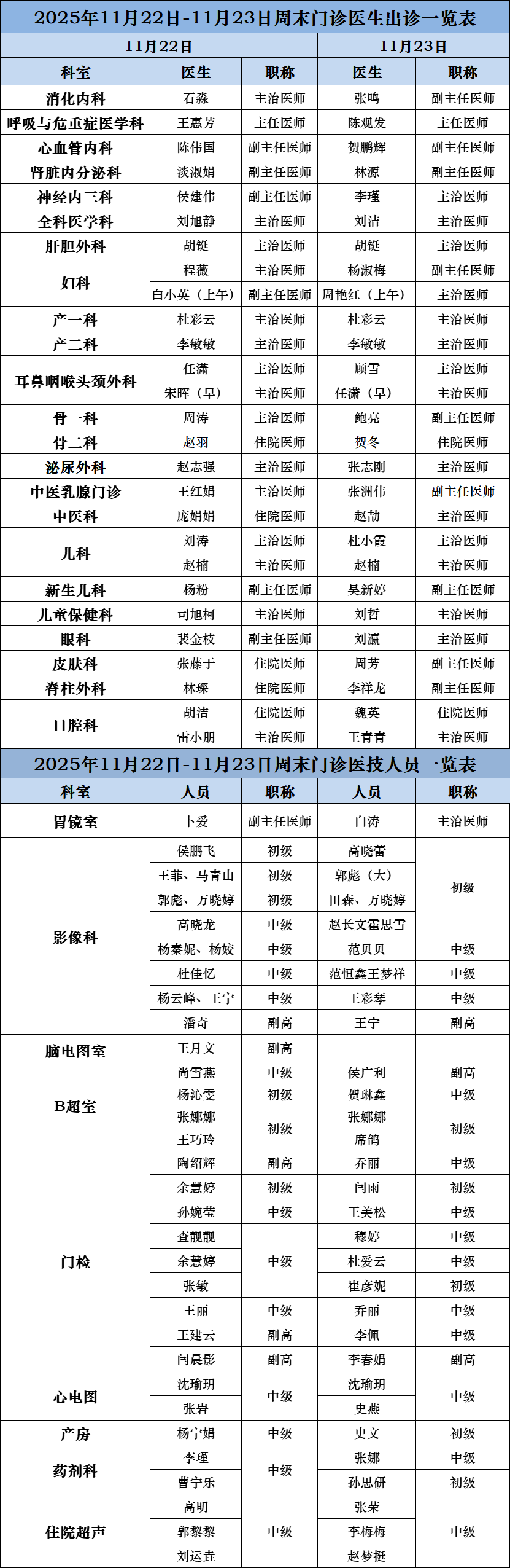 周末门诊丨 西安医学院第二附属医院11月22日-11月23日周末门诊出诊安排