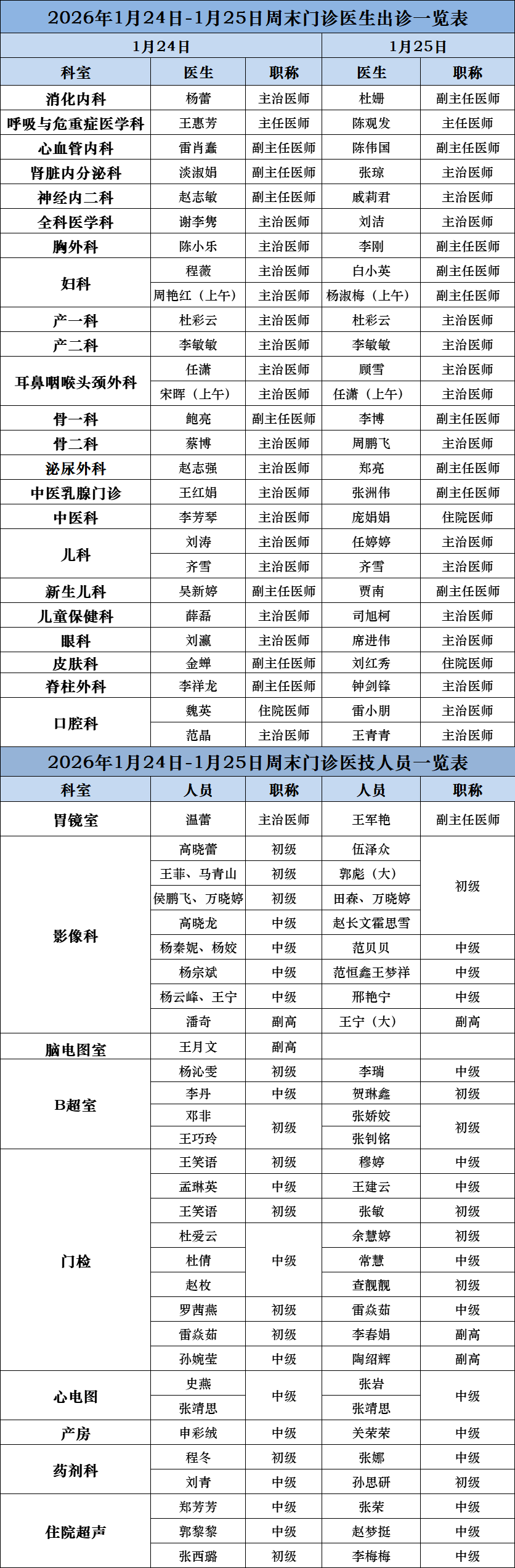 周末门诊丨 西安医学院第二附属医院1月24日-1月25日周末门诊出诊安排