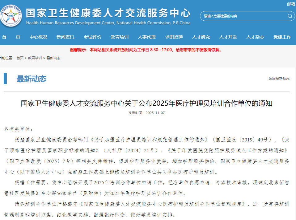 获批国家卫生健康委人才交流服务中心第1批医疗护理员培训合作单位