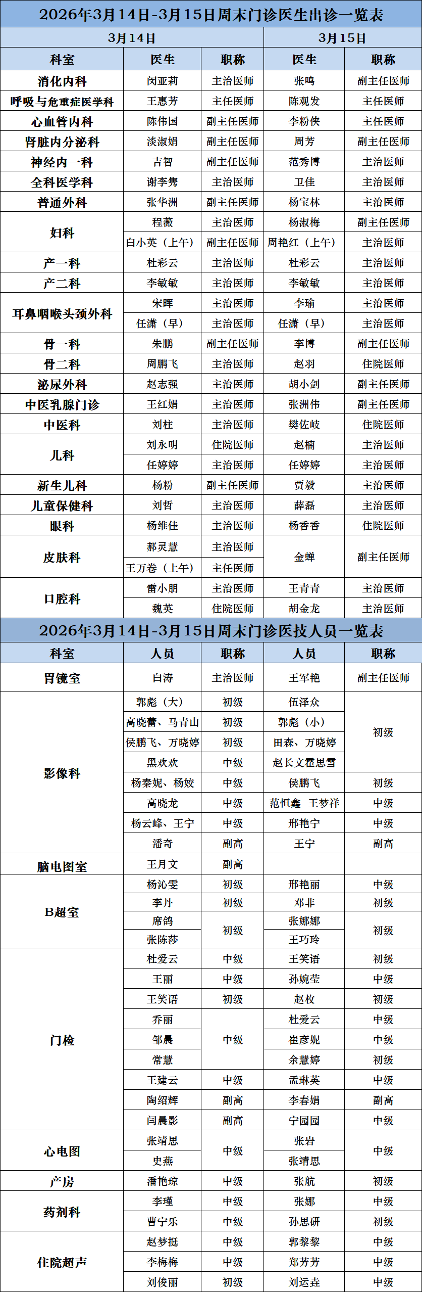 周末门诊丨 西安医学院第二附属医院3月14日-3月15日周末门诊出诊安排