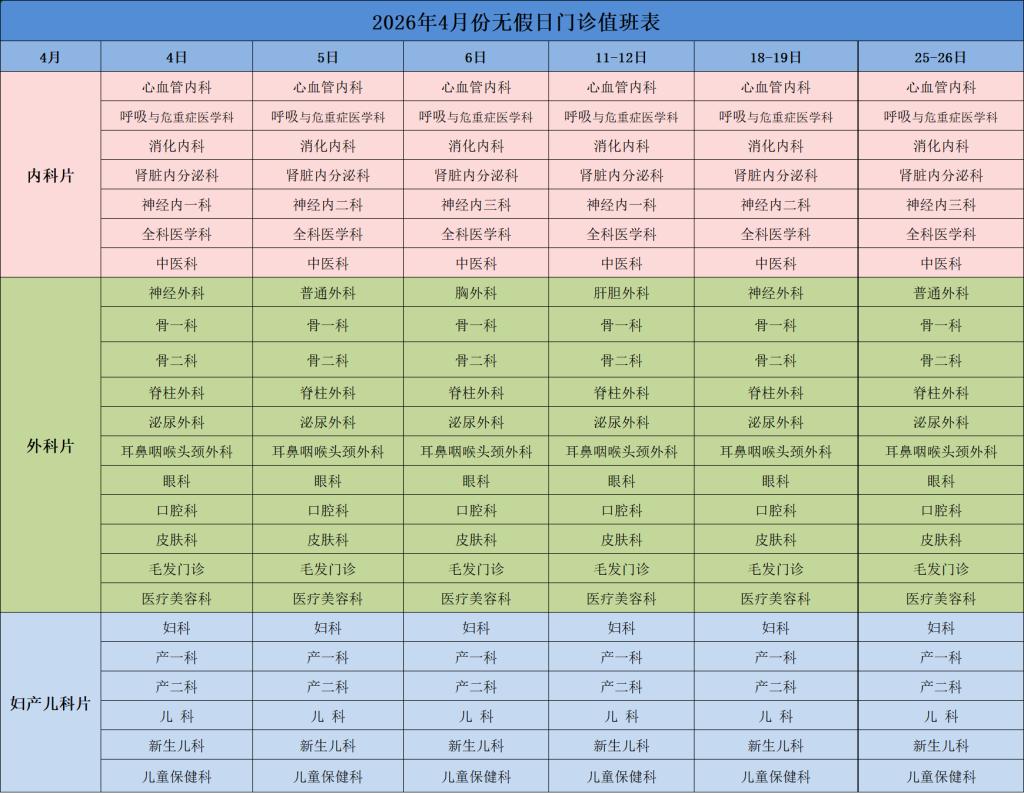 4月份无假日门诊