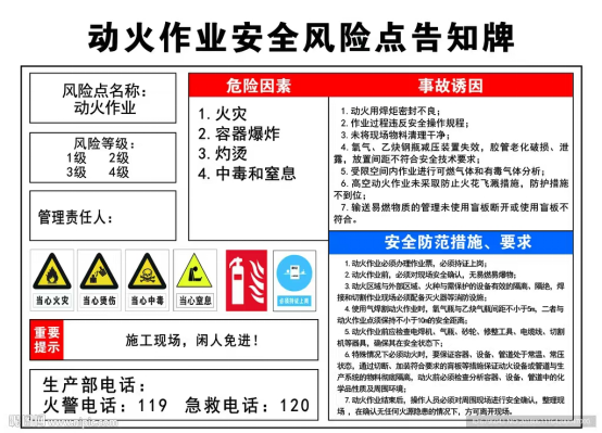 隔离:设置物理隔离区,悬挂“动火区域,严禁入内”警示牌。