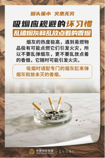 2025年11月是我国第34个全国消防宣传月。今年的主题是“全民消防、生命至上——安全用火用电”。此项活动旨在全面提升社会的消防安全意识。医院作为人员密集、易燃物多且疏散难度大的场所,一旦发生火灾,后果不堪设想。而烟头,正是医院消防安全中一个极其危险且不容忽视的“火源”,提高对烟头火灾防范意识至关重要。