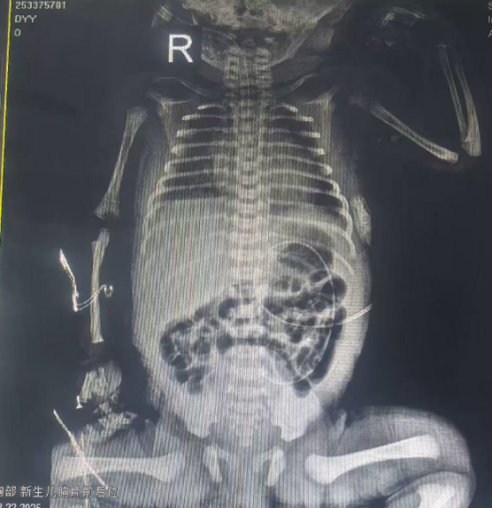 抢救刻不容缓。团队果断实施交叉配血、气管插管、脐静脉置管、腋动脉置管等一系列抢救措施,同时精准纠正休克、输注红细胞悬液。整个救治过程如履薄冰——每一毫升的输液输血都需精确计算,多一分可能加重心衰,少一分则无法逆转休克与贫血。